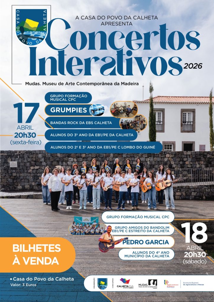 É com agrado que partilhamos convosco o programa dos Concertos Interativos 2026, promovidos pela Casa do Povo da Calheta, que regressam com dois dias repletos