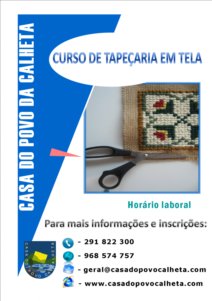 Estão abertas as inscrições para o CURSO DE TAPEÇARIA EM TELA, na Casa do Povo da Calheta. O curso é destinado a adultos e será